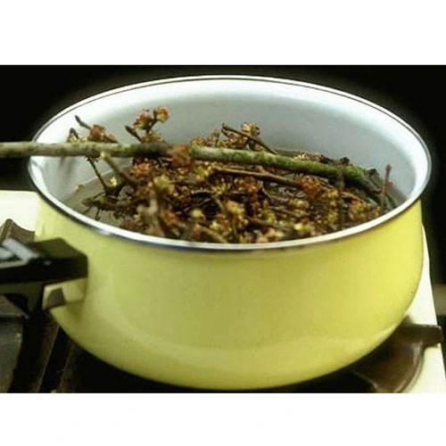 This method is mainly used for the tougher , woodier plants. In this the flowers, twigs and stems are collected in a clear enamel saucepan and boiled for about half an hour in spring water. It is left to cool and the water is filtered and later preserved in brandy in a ratio of 1:1. This is also known as the Mother Tincture, as it contains the pure extract.